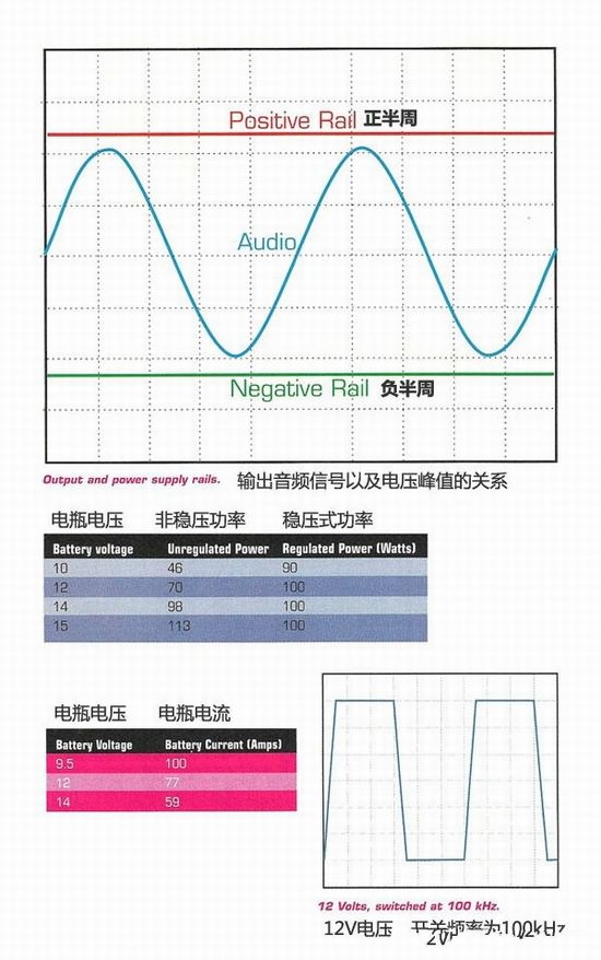 汽車功放的電源部分的主要作用就是將汽車蓄電池也就是電瓶的電量轉(zhuǎn)化為更高的電壓。例如,如果一個功率放大器需要在四歐的狀態(tài)下,輸出100W的功率,那么我們需要的RMS額定電壓為20V。這時其時我們需要的電壓值為+/-28V,因為20V的額定電壓,其峰值電壓為28V。我們稱其為臨界電壓,是因為功率放大器的功率放大管的電壓最大達到這里,但實際設(shè)計時,會稍微更高一點,而保有余量。