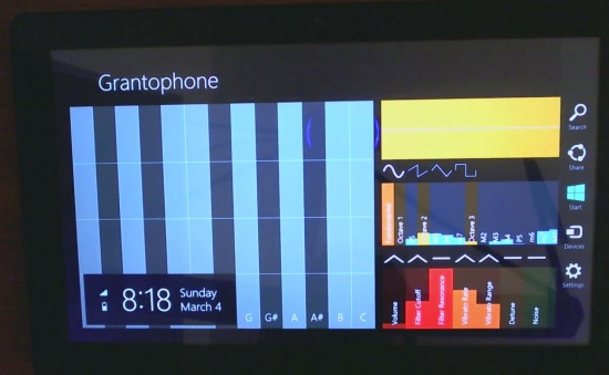 由于Windows 8剛剛推出了消費預(yù)覽版,所以Grantophone似乎也是第一個運行在這個新平臺上的Metro應(yīng)用(因為Windows 8也有傳統(tǒng)Windows界面,但不適合觸摸操作)。可以看到Windows 8平板也具備了潛在的音樂制作能力,它將來也會像iOS那樣成為新的音樂制作平臺嗎?
