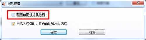 在插孔設(shè)置的“禁用前面板插孔檢測”一項(xiàng)打上“對號”并單擊確定即可,如下圖: