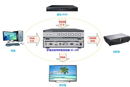 CREATOR快捷多格式信號(hào)轉(zhuǎn)換器SC-290系統(tǒng)連接圖: