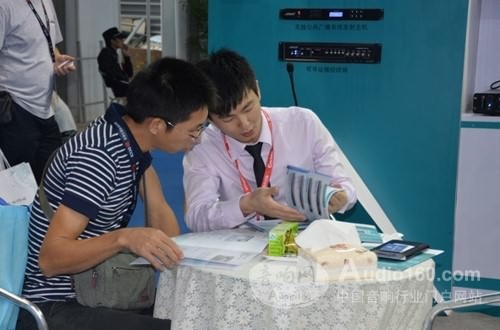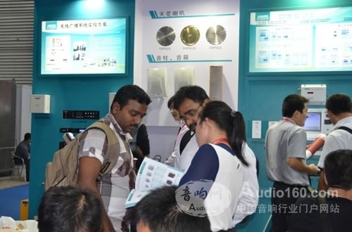 迪士普企業(yè)工作人員向觀眾介紹各套公共廣播系統(tǒng)