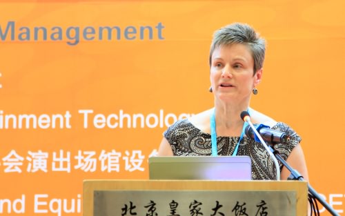 美國戲劇技術(shù)協(xié)會主席莉•阿斯貝爾-史旺格做“美國演藝產(chǎn)業(yè)與學(xué)術(shù)配合”專題演講