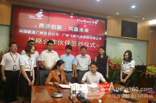 2013年7月3日上午,中國聯(lián)通廣州市分公司與飛歌公司的戰(zhàn)略合作伙伴關系簽約儀式,在飛歌大樓六樓會議中心隆重舉辦。太平洋汽車網(wǎng)、愛卡汽車、影音網(wǎng)、360汽車網(wǎng)、汽車用品報、《消費電子》雜志、汽車之友、汽車雜志、玩車雜志、IT168、九州傳媒、音響改裝等行業(yè)媒體與飛歌公司共同見證這重要的一刻。