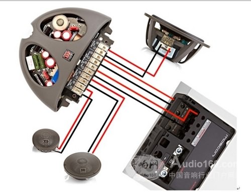 【發(fā)燒友接法】如果汽車喇叭系統(tǒng)是接通四通道的功放,在改裝過程中可把中間的跳線去掉,一個通道信號輸入一單元信號輸出的接法(Bi-Amp,Bi-Wire),俗稱半主動分頻,此種接法特別適合對音質(zhì)要求高的發(fā)燒友。這也是昌哥和John都向我推薦的接法!