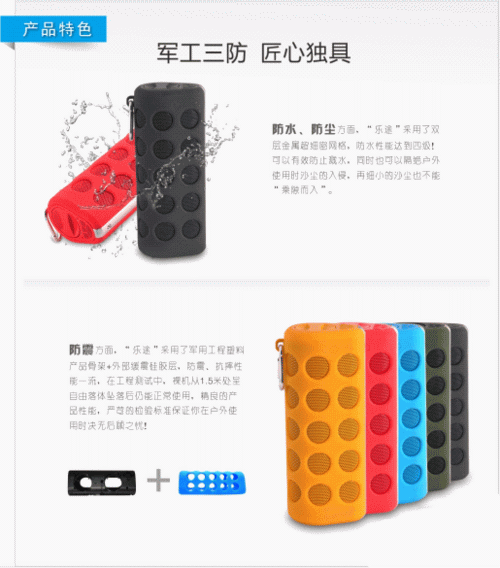 作為一款偏重戶外兼具家居的全功能型藍(lán)牙音響產(chǎn)品,產(chǎn)品的三防功能要求甚高,為此DOSS的工程師們通過不斷試驗(yàn)、比對(duì),采用了特殊的工藝及材料,最終使“樂途”的三防功能達(dá)到行業(yè)頂尖水準(zhǔn):
