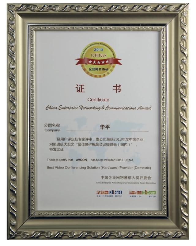 日前,2013年度中國企業(yè)網(wǎng)絡(luò)通信獎項(CENA)評選結(jié)果公布,華平,領(lǐng)先的多媒體通信系統(tǒng)和智慧城市領(lǐng)域解決方案提供商,繼2011年被評為“最佳硬件視頻會議提供商(國內(nèi))”之后,再次榮獲此獎。