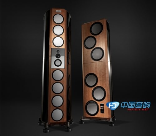 單元則全是Accuton全新的Cell單元,喇叭前方有一顆20mm的鉆石高音、一顆51mm的鉆石次高音,1顆5"的陶瓷中音、1顆8"鋁質(zhì)三明治中低音、6顆8"的鋁質(zhì)三明治低音。背后有6顆11"的被動式低音,可低到40Hz以下。