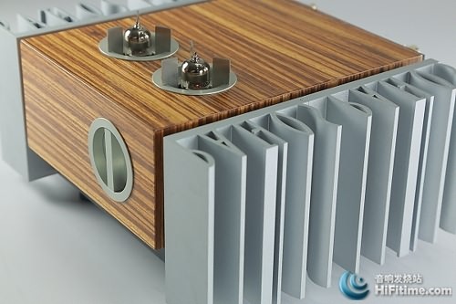 InpolRemix箱體上方非常的簡(jiǎn)潔,只有兩支訊號(hào)真空管,并且將訊號(hào)管開口處設(shè)計(jì)的非?苹们靶l(wèi),又與木紋貼皮箱體沒有違和感,而是巧妙的融合在一起.面板只有一顆金屬的音量控制旋鈕,其他的功能鍵皆藏在箱體下方,而除了電源鍵按鈕是銀色外,其他的按鍵得靠說明書才能知曉,不只是箱體本身的設(shè)計(jì)是這樣,連搖控器也是只有5顆一模一樣的按鈕,卻沒有任何文字說明.Pathos的設(shè)計(jì)功力還不止這樣而已,他們更將品牌的每個(gè)字母與機(jī)器散熱片融合在一起,讓InpolRemix具備了極致的設(shè)計(jì)感,并且擁有讓男女都會(huì)喜歡的特色.