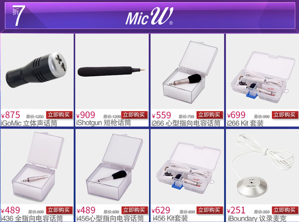 MicW i系列中的6款產品,雙12當天火熱促銷,MicW i系列產品可用于iPad、iPhone和數碼相機上使用,具備即插即用,方便攜帶,高清晰的錄音品質等特點。其中,MicW iGoMic立體聲麥克風斬獲日本DGP 2015金獎。有需要的趕緊下手吧!機不可失,時不再來!