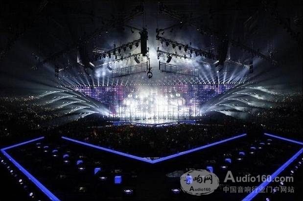 這一年,現(xiàn)場觀眾3.6萬人。德國燈光設(shè)計師Jerry Appelt實現(xiàn)了足球場“一秒”變演播室的神話,最為令人稱道的是他對觀眾席的燈光改造,根據(jù)他的設(shè)計,場館的地板和上空密布LED燈,緩緩發(fā)出淡紫色的光,整個球場內(nèi)泛出一圈圈光的漣漪,從而讓觀眾區(qū)和舞臺舞美渾然天成。