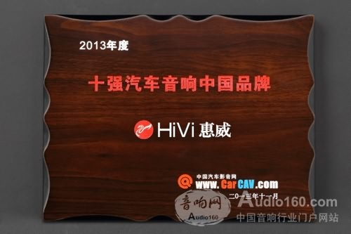 CarCAV十強(qiáng)汽車音響中國(guó)品牌,這項(xiàng)綜合了產(chǎn)品口碑、品牌形象以及售后服務(wù)等多個(gè)方面的重要獎(jiǎng)項(xiàng)。2013年度HiVi惠威汽車音響繼續(xù)發(fā)力,再次榮獲2013年度CarCAV十強(qiáng)汽車音響中國(guó)品牌。