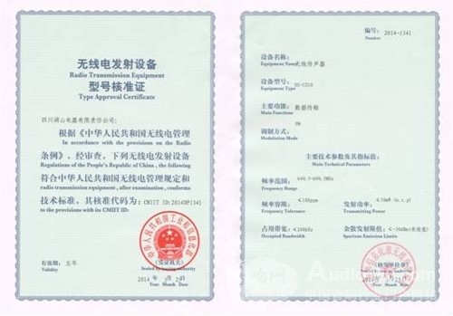 工信部國(guó)家無(wú)線電監(jiān)測(cè)中心對(duì)我公司的無(wú)線話筒進(jìn)行了嚴(yán)格的型號(hào)核準(zhǔn)測(cè)試,測(cè)試指標(biāo)全部合格,所有產(chǎn)品測(cè)試均一次性通過(guò)。無(wú)線話筒獲得型號(hào)核準(zhǔn)證是湖山在無(wú)線話筒領(lǐng)域的重大突破,打破了國(guó)內(nèi)無(wú)線話筒被國(guó)外廠商壟斷的局面,證明了湖山在無(wú)線話筒領(lǐng)域的強(qiáng)大實(shí)力,標(biāo)志著國(guó)內(nèi)無(wú)線話筒新局面的開(kāi)端。