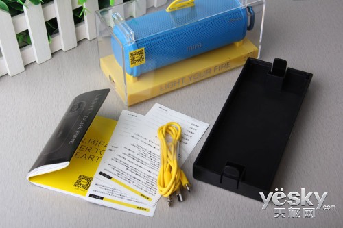 跟大多數(shù)藍(lán)牙音箱的包裝不同,Mifa F5藍(lán)牙音箱外包裝采用的亞克力透明材質(zhì),高檔意味明顯。外包裝分為上下兩部分,上半部采用的透明面殼,下半部是黑色底座。上下兩部分通過左右兩側(cè)的卡扣銜接,在前后中間部位有貼紙粘貼。在透明面殼的下方,可以看到一個(gè)黃色的基座,音箱就放在這個(gè)基座上。