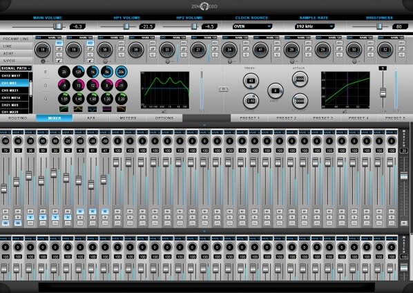 所有音頻 I/O 都可以同時使用,總計 38 個輸入和 32 個輸出通道,外加 24 個經(jīng)過定制 USB 的 24 個同時的 I/O 通道,支持 24-bit,192kHz 音頻。用戶可以創(chuàng)建多達(dá)四個獨立零延遲的混音并可指派到任意輸出,包括兩個獨立的耳機(jī)輸出與監(jiān)聽輸出。該設(shè)備可使用一個直觀的 PC 和 Mac 桌面應(yīng)用程序完全控制,提供了靈活的信號路由以及基于 DSP 的效果,并有定制的預(yù)設(shè)。
