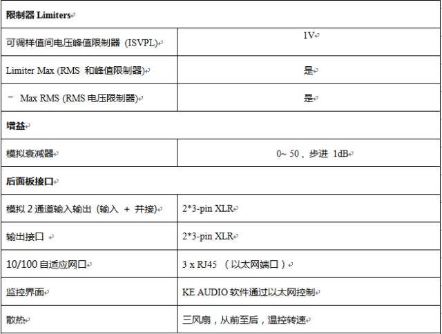 “KE”智能功放集成的DSP具有:高性能雙32-bit音頻專用浮點(diǎn)處理器;高性能A/D, D/A轉(zhuǎn)換器;每個(gè)通道有7段參量均衡器;多種分頻模式, 6dB,12dB,24dB或48dB,寧克-銳,貝賽爾,巴特沃斯;每個(gè)通道有獨(dú)立的延時(shí)器,最大80ms, 延時(shí)步距0.1ms ;每個(gè)通道還有獨(dú)立的壓縮器和限制器, 所有參數(shù)均可調(diào)整;相位反轉(zhuǎn)功能,數(shù)字噪聲門;30個(gè)用戶存儲(chǔ)器,直觀友好的電腦界面,RJ45接口;通道Copy功能,方便調(diào)試等諸多優(yōu)點(diǎn)。