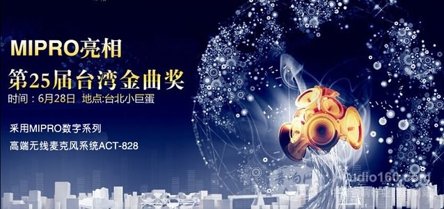 6月28日晚第25屆臺灣金曲獎頒獎典禮于臺北小巨蛋舉行,典禮由庾澄慶主持,林俊杰、戴佩妮斬獲最佳男女歌手,張震岳獲最佳國語專輯。典禮現(xiàn)場傳聲采用了MIPRO數(shù)字系列高端無線麥克風(fēng)系統(tǒng)ACT-828,無論聲音效果和穩(wěn)定性都在當(dāng)晚典禮的傳聲中可圈可點。