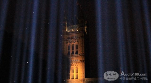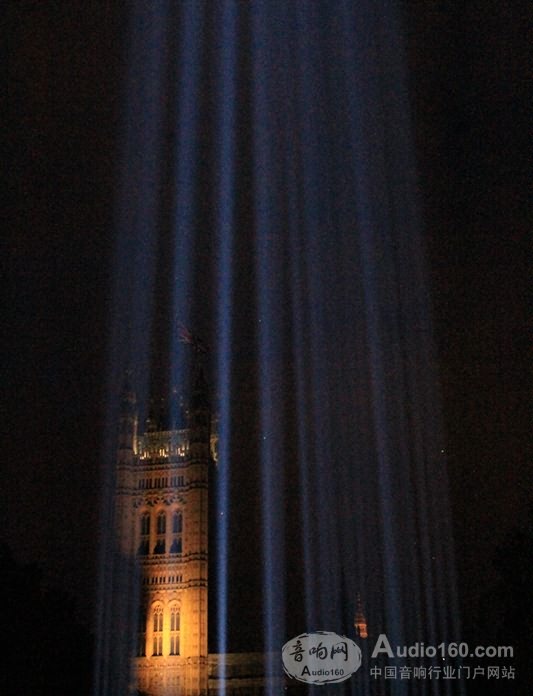 為紀(jì)念英國在第一次世界大戰(zhàn)中向德國宣戰(zhàn)100周年,由旅居法國的日本藝術(shù)家池田亮司設(shè)計(jì)的藝術(shù)作品“光譜”4日晚開始在泰晤士河畔議會大廈旁展出。作品由49個投影和音響裝置組成,向天空射出49根光柱,這一展示將持續(xù)7天。