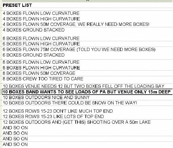經(jīng)過對(duì)摩登舞臺(tái)前場地的前期測量與觀眾估算,北京太平寶迪科技有限公司(BUDEE)與Martin Audio共同決定使用MLA 36系統(tǒng),即包含MLA22只(左右各11只)、MLD2只(左右各1只)、MLX12只(左右各六只)的龐大系統(tǒng)。另外有請自行成算所有DSP的數(shù)量,每一個(gè)單元都能就場地的特殊性做出調(diào)整,使得每一只箱子在每一個(gè)場地的設(shè)置都是獨(dú)一無二的。為什么這樣設(shè)置,因?yàn)槊恳粋(gè)現(xiàn)場環(huán)境都是獨(dú)一無二的。