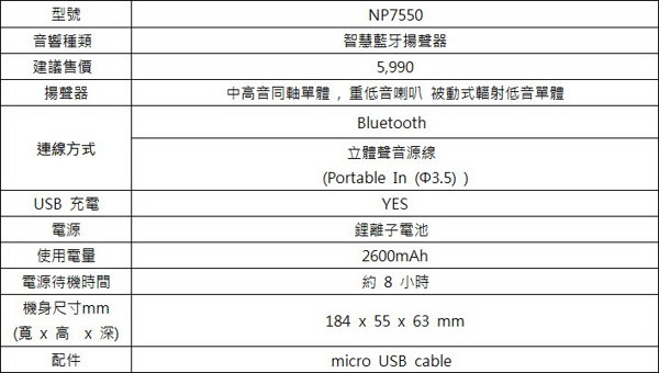 內(nèi)建鋰電池8小時(shí),透過藍(lán)牙與行動(dòng)裝置進(jìn)行無線音樂串流,具有防潑水功能,能在浴室或廚房等地方安全使用.