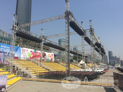 整場(chǎng)活動(dòng)現(xiàn)場(chǎng)一共使用了307只JBL專(zhuān)業(yè)揚(yáng)聲器,所有揚(yáng)聲器均由Crown頂級(jí)的I-TECH HD系列功放驅(qū)動(dòng)。前區(qū)的主擴(kuò)聲由13組×3只/組的JBL最新的線(xiàn)陣揚(yáng)聲器VTX V20 組成;當(dāng)中低頻陣列采用了4組×3只/組心型擺放的超低頻揚(yáng)聲器VTX S25。觀眾席上方則分布安裝了240只JBL EON615,以20只為一組懸掛于觀眾上方,讓觀眾不受聽(tīng)音位置的限制,享受到更為真實(shí)曼妙的音樂(lè)。