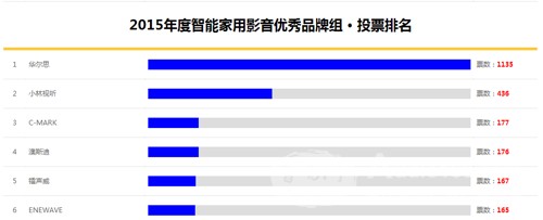 2015年度智能家用影音優(yōu)秀品牌組 · 投票排名 華爾思 1135