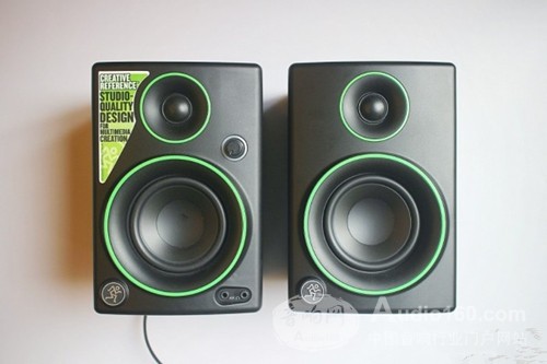CR3的外形簡潔,大方。中低音和高音單元都有綠圈圍繞,低調(diào)而不失氣質(zhì)。左下角是奔跑小人的LOGO,沒有RunningMan,也沒有Mackie的字樣。