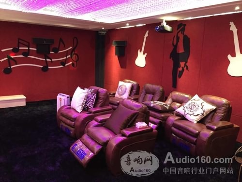 龍翔山莊私人影音室面積40平米左右,影音室的長寬比例非常適合做影音室,避光性良好。整個影音系統(tǒng)考慮到觀眾觀看距離與空間的開闊性,我們一禾企業(yè)采用了1080P全高清高亮度投影機和150寸幕布,適合長時間觀看?紤]到大動態(tài)、爆棚等大制作音效的還原,選用我們一禾企業(yè)自主品牌PROBASSCO音響BF系列,搭建了一套7.2聲道影音系統(tǒng),2只BF-112作為左右主音箱,4只BF-106作為環(huán)繞音箱,1只中置BF-206,再加2只超低音BF-115B,確保整體音效還原大到錄音室想要表達的音準,使其觀看電影效果如同專業(yè)影院一般,震撼逼真!