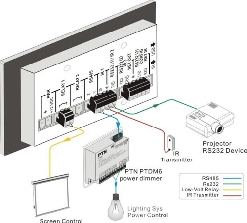 每個按鍵都可以通過串口RS232 和RS485 對外圍設(shè)備(攝像機、投影機等)進行可編程控制。