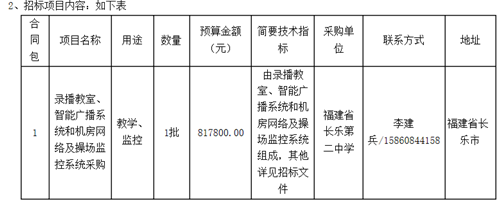 福建省智信招標有限公司受福建省長樂第二中學委托將對下列政府采購項目進行公開招標采購: