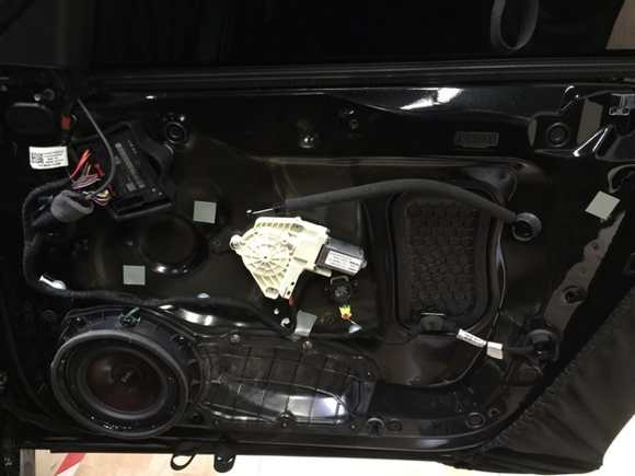 后聲場(chǎng)高音單元和前聲場(chǎng)高音單元也是一樣的安裝方式,只不過這個(gè)是安裝在門板上,都是安裝在原喇叭位。