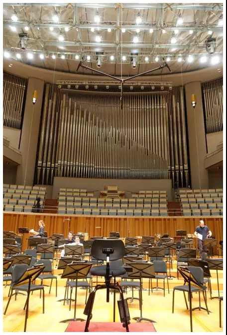 首先對于主話筒的選擇,依舊沿用經(jīng)典的Decca Tree吊裝形式,在指揮頭頂約3.8米高的位置懸掛,由三只DPA 4006A全指向話筒組成,可以捕捉到整個樂隊最均衡的表演,再加上同時拾取到的音樂廳本身的聲場特性,無需過多處理,有如自然合成的美妙之音便呈現(xiàn)在我們耳畔。同時,立體聲展寬話筒采用兩只DPA 4006C吊裝在舞臺兩側(cè),為了增加環(huán)繞聲的沉浸式感受,還在觀眾席的前后區(qū)都吊裝了DPA 2011C環(huán)境觀效話筒,為還原大劇院音樂廳聲場的真實感做了良好的補充,也能抓住觀眾們熱情的反應(yīng),無論是樂章間歇中觀眾細(xì)微的舒展活動,還是最后一個音符結(jié)束時的滿場歡呼,都張弛有度。