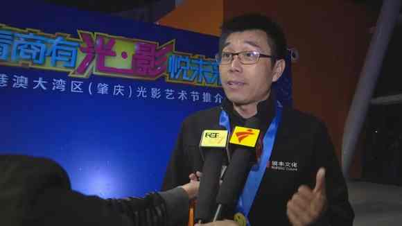 ▲廣東宇宙心音文化旅游發(fā)展有限公司副總經(jīng)理肖學(xué)明接受媒體采訪,介紹肇慶光影藝術(shù)節(jié)亮點(diǎn)。