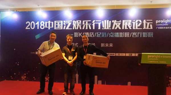 在上午的會(huì)議過(guò)程中,還進(jìn)行了兩輪的抽獎(jiǎng)活動(dòng),分別抽出了價(jià)值4999元的天逸悅享一號(hào)全景聲客廳影院套裝一套、價(jià)值7500元的道奇(KFG)超級(jí)影K音響一臺(tái),以及傲力聲音頻線10條。廣州天逸電子有限公司總經(jīng)理李智先生、廣州道奇信息科技有限公司CEO郭宏亮先生、傲力聲代表等分別作為抽獎(jiǎng)嘉賓,并為幸運(yùn)獲獎(jiǎng)?wù)哳C獎(jiǎng)。