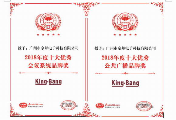 12月28日,萬眾矚目2018視聽行業(yè)高峰論壇暨第十屆音響行業(yè)十大優(yōu)秀品牌評選頒獎典禮在深圳圣廷苑酒店圓滿落下帷幕。此次盛會以“創(chuàng)新·融合 共創(chuàng)視聽新紀元”為主題,匯聚了音視頻行業(yè)資深人士、知名企業(yè)、協(xié)會專家、企業(yè)高層、行業(yè)媒體等行業(yè)大咖600多人,盛況空前!經過專家組、評委組等多種方式層層篩選,在400多家參選企業(yè)中,京邦品牌脫穎而出榮獲2018年度十大優(yōu)秀公共廣播品牌獎與2018年度十大優(yōu)秀會議系統(tǒng)品牌獎。