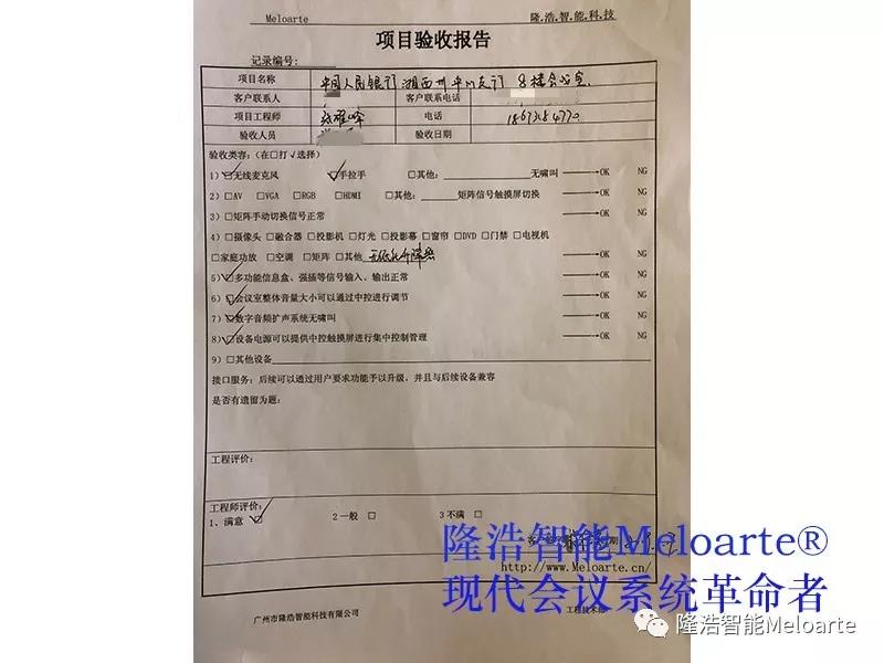 以上設備安裝調(diào)試完畢 ,得到了領導的一致高評,尤其是用途方面考慮功能的完善性,我們采用全數(shù)字的音視頻解決方案,操作簡單,方便,表示后續(xù)項目依然首選Meloarte品牌。