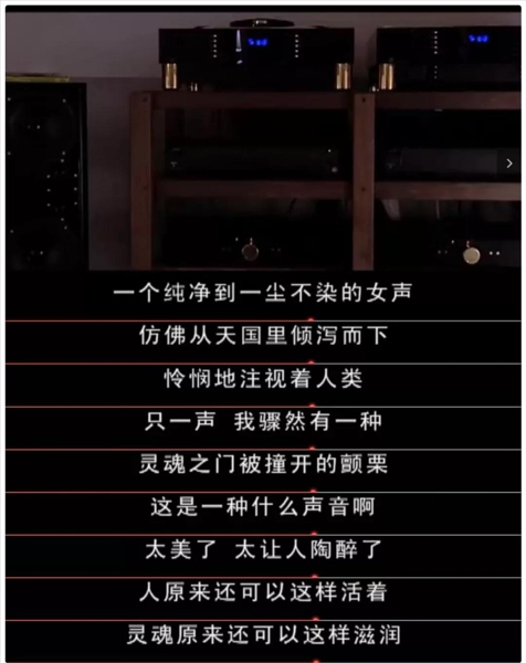 劇中男女主人公的交集正是起源于男主那套于2006年便價值40萬的音響:西湖特制書架箱,MBL頂級轉(zhuǎn)盤+解碼,兩臺DENSEN前級+八臺DENSEN后集,全套天仙配。