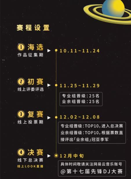 而現(xiàn)在,第十七屆先鋒DJ大賽再次來到,前有成功范例,后有無限可能。你準(zhǔn)備好來一試身手了嗎?