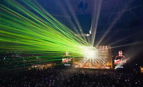 首站,深圳灣的春繭體育館仿佛打開了萬花筒,蓮花造型的激光燈架、巨幅的冰屏、可旋轉(zhuǎn)+移動的沉浸式燈架編排、情景與音樂交融的視效與音效……為觀眾獻上了一場耳目一新的音樂盛宴。