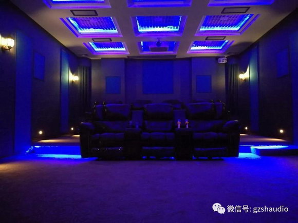 二排影音定制沙發(fā)(前2后3),并為后排設計了一個高25cm的二級地面;