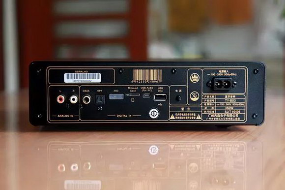 音箱的正面干凈清爽,除了顯示指示外,沒(méi)有任何操控的旋鈕按鍵,所有的都集中于一只具有多種復(fù)合功能的13鍵的小遙控器上。機(jī)箱的背板承載了整機(jī)所有的信號(hào)輸入端口:模擬輸入、光纖同軸輸入、HDMI ARC輸入、TF卡輸入、USB Audio輸入、USB輸入,加上本身的無(wú)線藍(lán)牙,可謂將當(dāng)前流行的主流音源輸入都一網(wǎng)打盡了!利用這些音頻信號(hào)輸入端口,你可以無(wú)線連接手機(jī)、接駁CD機(jī)、PC、直播U盤(pán)及TF的無(wú)損音樂(lè)。