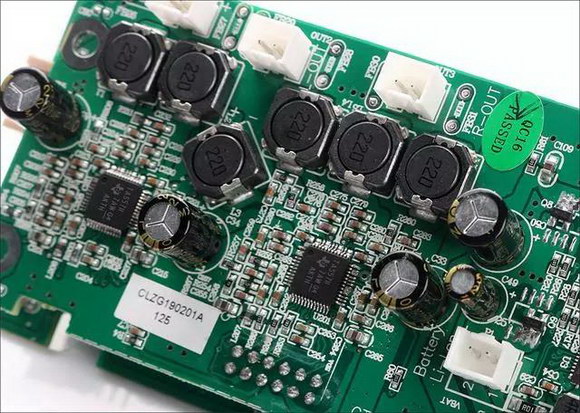 位于主電路板前方的那塊獨(dú)立安裝的電路板是典型的D類(lèi)電源板,也就是本機(jī)的動(dòng)力源泉,保證整機(jī)有60W的充沛音頻功率輸出,設(shè)計(jì)師選用了發(fā)熱量很小、換能效率很高的D類(lèi)電源,D類(lèi)數(shù)字電源在技術(shù)層面上已相當(dāng)成熟,不僅僅電能轉(zhuǎn)換輸出功率的效能可以輕松達(dá)90%以上,發(fā)熱量很小,所提供的輸出功率也絕非模擬電源可比,同時(shí)可靠性程度相當(dāng)高,且符合綠色家庭節(jié)能環(huán)保的要求,因而得到廣泛認(rèn)可和大量的應(yīng)用。