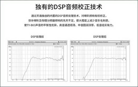為了使得中高音和有源低音炮的聲音頻率的銜接更加的自然和圓潤(rùn),設(shè)計(jì)師特別為T(mén)Y-B03設(shè)計(jì)制定了專(zhuān)門(mén)的全頻域聽(tīng)感校正電路,并利用獨(dú)特的DSP音頻校正算法,有效的改善了音箱的音質(zhì)音色在聽(tīng)感上缺乏精致的細(xì)節(jié)、厚重的韻味和多層次的聲音色彩,使其具有大型HI-FI音響的氣勢(shì)和較為濃郁的音樂(lè)味,聆聽(tīng)的舒適感和耐聽(tīng)感大大增強(qiáng)!