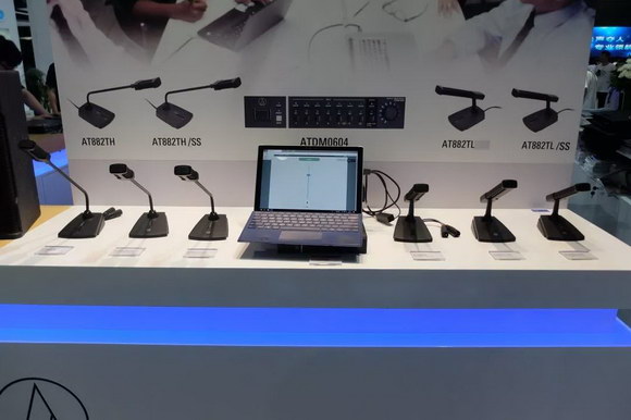 這次展會ATUC-50數(shù)字會議系統(tǒng)也推出新的桌面式會議話筒解決方案,它們是搭配ATUC-50IU嵌入式單元使用的AT881TL/RC超指向帶LED燈遠(yuǎn)程控制的電容話筒,AT881TH/RC心型指向帶LED燈遠(yuǎn)程控制的電筒話筒,以及AT882TL/SSRC雙音頭超指向帶 LED 燈無噪單路/遠(yuǎn)程開關(guān)的電容話筒和AT882TH/SSRC雙音頭心型指向帶 LED 燈無噪單路/遠(yuǎn)程開關(guān)的電容話筒。