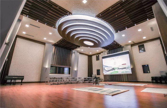 傳新科技與Cañellas、浙江音樂學院的黃主任以及學校的裝修施工團隊負責人郭明一起為WSDG提供了許多富有創(chuàng)意的好想法!斑@座錄音室的內(nèi)部空間很大,這為我們提供了一個龐大的聲學和視覺創(chuàng)意空間!盋ipriano說,“我們設(shè)計了許多元素,我們相信這些元素將為學生、音樂家和老師們提供創(chuàng)作靈感。錄音棚里最顯眼的造型是天花板上兼用作照明用途的祥云形狀聲學擴散板。從錄音室8米高的屋頂上吊掛下來的祥云擴散板除了在造型讓人眼前一亮,聲學效果和氛圍燈效果同樣驚艷!