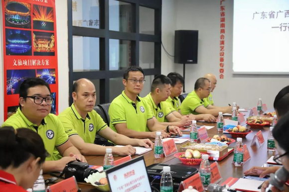 2019年8月15日下午,廣東省廣西商會(huì)演藝設(shè)備專業(yè)委員會(huì)一行蒞臨我會(huì)交流并指導(dǎo)工作。我會(huì)會(huì)長(zhǎng)張向農(nóng)率領(lǐng)理事會(huì)成員對(duì)此次來(lái)訪友會(huì)代表進(jìn)行熱情接待,雙方開展愉快的座談并交流學(xué)習(xí)。廣西商會(huì):戴小明會(huì)長(zhǎng),夏成輝執(zhí)行會(huì)長(zhǎng),曹金滿常務(wù)副會(huì)長(zhǎng),楊業(yè)鵬常務(wù)副會(huì)長(zhǎng),黃嘉華副會(huì)長(zhǎng),覃雪福副會(huì)長(zhǎng),黃顯強(qiáng)秘書長(zhǎng),冼東勝副秘書長(zhǎng),以及我會(huì):張向農(nóng)會(huì)長(zhǎng),廖紅義常務(wù)副會(huì)長(zhǎng),劉海玲常務(wù)副會(huì)長(zhǎng),王求德常務(wù)副會(huì)長(zhǎng),劉敏燕秘書長(zhǎng),孫思副秘書長(zhǎng),閆麗副秘書長(zhǎng),黃芳副秘書長(zhǎng)等人員參加此次交流指導(dǎo)工作。