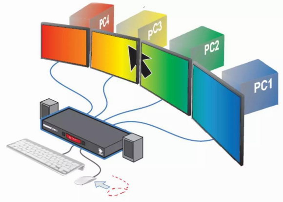 隨著機房內(nèi)計數(shù)機、服務(wù)器、工作站等設(shè)備數(shù)量的增加,我們常?鄲烙诙嗵祖I盤鼠標鋪滿桌面的狀況,或者即使有鍵鼠切換器,也不得不脫離鍵鼠來手動按鍵切換。ADDER的鼠標跨屏切換方案解決了所有這些尷尬,非常好的解決了用一套鍵盤、鼠標同時監(jiān)看、操作多臺計算機主機的問題。