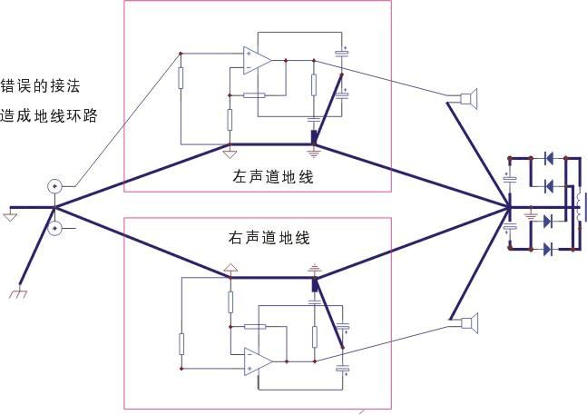 地線如何安排呢?原則上應(yīng)以電流量來考慮,電流量大的要盡量接在原頭,依次傳接過去,還要跟據(jù)放大前后端的路徑依序接地。地線盡量不要成為兩條以上的路徑而后又接在一起。還有一種叫“星形接法”,即是將個別電路上的地群分開來接到一個共同點。這樣比較不會互相干擾。