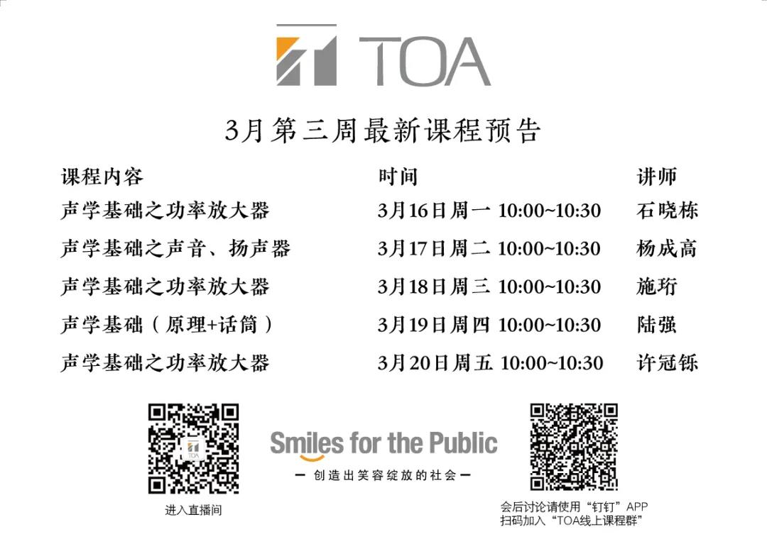 3月24日TOA《會(huì)議室擴(kuò)聲系統(tǒng)設(shè)計(jì)》線上課程