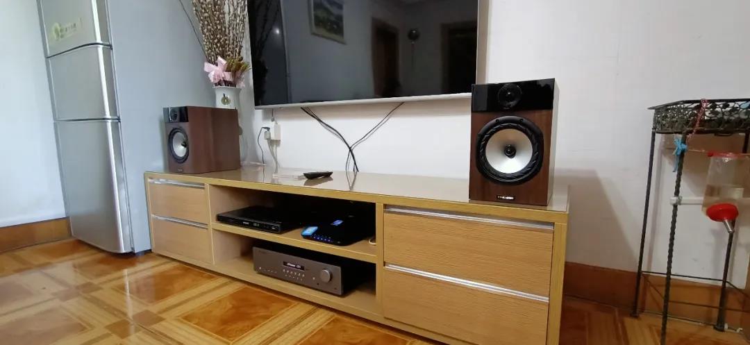 發(fā)燒友采用了英國劍橋功放 AXR100 搭配 Fyne Audio 書架 F301 胡桃木系列.