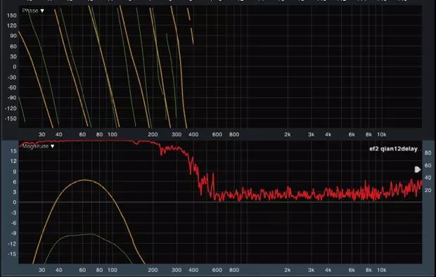 第三步:同樣的測(cè)試位置,只打開(kāi)第2只揚(yáng)聲器,并加入2 ms延時(shí),與第二步中抓取的相位對(duì)齊,并設(shè)置反相。